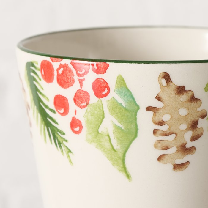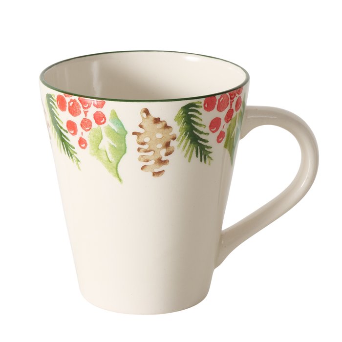 Deze handbeschilderde mok is een feestje op zich. Laat zich mooi combineren met de bijpassende serveerschaal en de gezellige tafelloper.